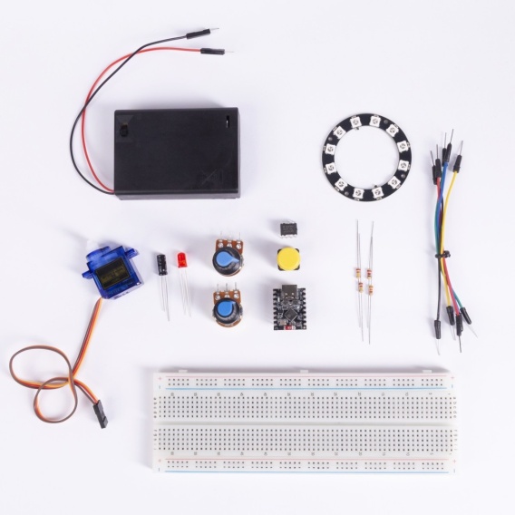 Electro Build Kit 1 to zestaw dla osób, które poznały już podstawy i chcą odkrywać bardziej fascynujące możliwości elektroniki. Wprowadzamy tutaj prawdziwe perełki: serwomechanizm do sterowania ruchem oraz inteligentne diody RGB LED, które możesz programować na dowolne kolory i efekty świetlne.